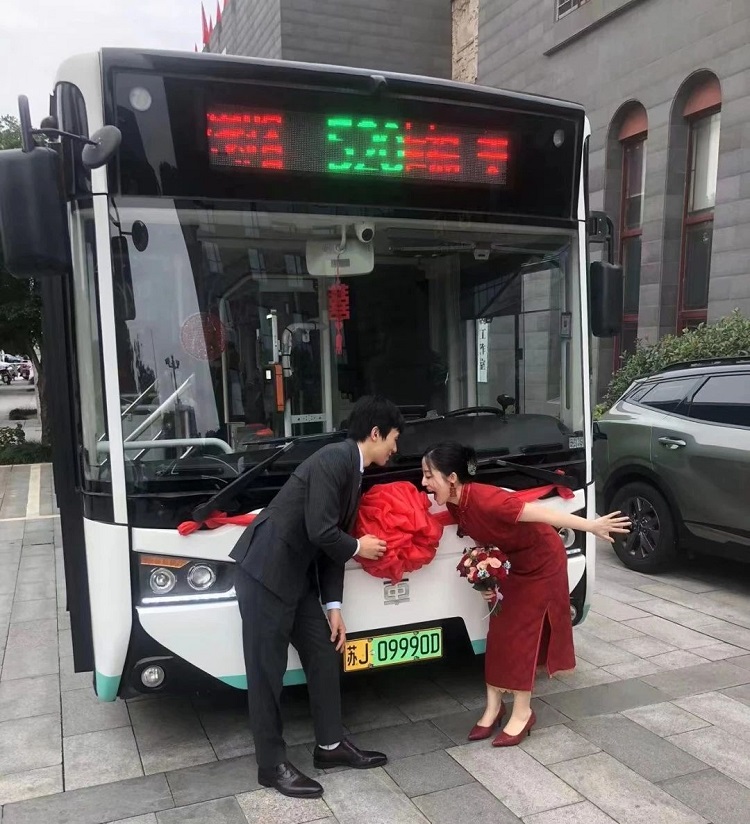 返回列表“租公交车作为婚车去接亲,热闹又喜庆,很特别也很有意义!”近两个月,盐城公交一分公司已完成4对新人的“公交婚车”订单,比去年全年业务量还多,另有多笔业务订单在洽谈中,公交婚车成为越来越多新人的接亲新选择,引领着绿色出行新时尚。