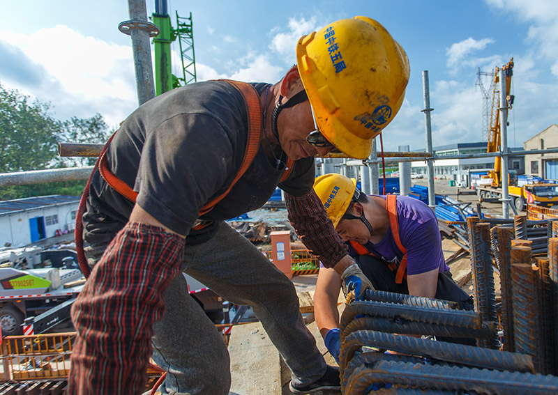 返回列表 在204国道盐阜快速通道黄沙港特大桥北主墩施工现场,有一对钢筋工搭档特别引人注目。他们既是工作上的搭档,也是生活中的忘年交。年纪大的叫欧阳兴农,58岁;年纪小的叫张旭,30岁。岁数上,他们相差了一代人,但工作中更像是哥们,配合默契,得空还相互打趣几句。