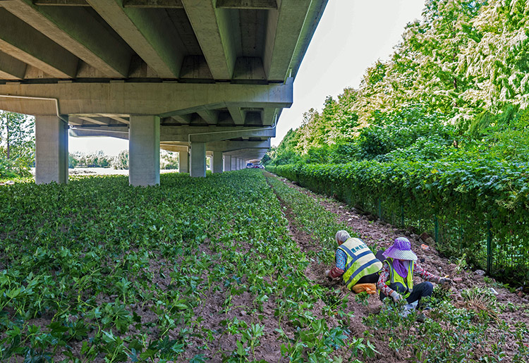 随着“秋凉”来临,市高架办加快了高架三期工程绿化施工步伐,以尽快为新建高架披上新装,妆扮美丽城市。目前,高架桥下中分带种植已在收尾,侧分带和枢纽区填土及土壤改良也基本完成。全线共已施用有机肥3319.65吨、东北泥炭1631.2吨、磷肥46.85吨;累计种植红叶石楠、海桐、八角金盘、常春藤、草坪、麦冬178640平方米,同时还完成3次共计16270平方米花草种植。