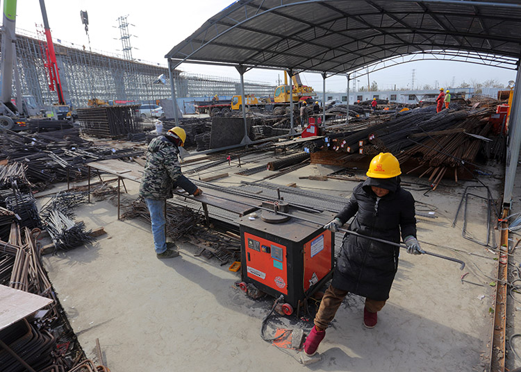 1月7日,盐城市区中午12点,室外气温仍达到摄氏零下8度,为本地区有气象记录以来所少见的极寒天气。在市区快速路网优化工程新都枢纽工地,为了确保春节前开放临时封闭的匝道桥,方便市民过节,高架工人们在加强防寒保障措施的同时,一如既往地早晨6点半钟就到上班,顶着刺骨的寒风,每天工作10个小时进行枢纽区新增匝道桥施工。