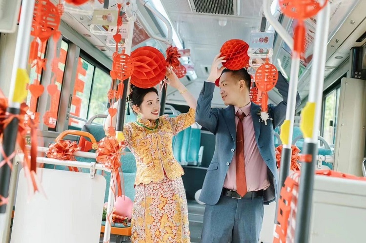 随着人们思想观念的不断更新,一些创意十足、文明节俭、低碳环保的婚庆方式,成为部分年轻人的潮流选择,彰显出现代社会的新潮婚礼趋势,“公交婚车”正是其中一个新形式。