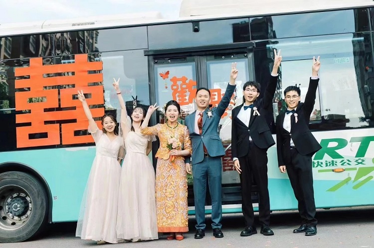 返回列表“租公交车作为婚车去接亲,热闹又喜庆,很特别也很有意义!”近两个月,盐城公交一分公司已完成4对新人的“公交婚车”订单,比去年全年业务量还多,另有多笔业务订单在洽谈中,公交婚车成为越来越多新人的接亲新选择,引领着绿色出行新时尚。