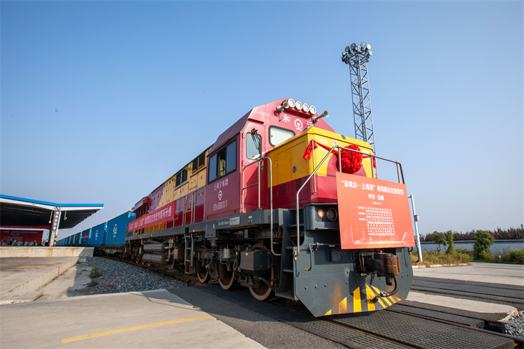 据了解,“盐城北—上海港”海铁联运定班班列为我市首开,每周二、四、六定班开行,较原来等货、组车等不确定因素,极大地保证了货物运输时效,并为企业降低约15%的综合物流成本。