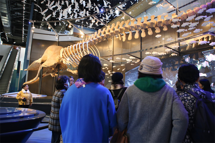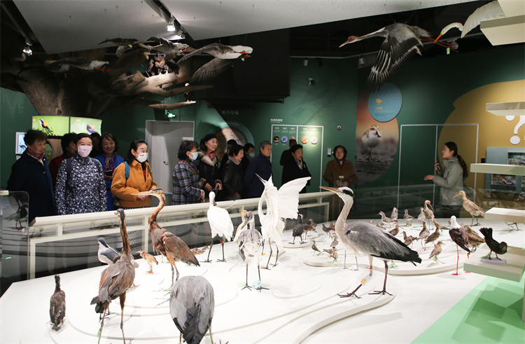 中国黄海湿地博物馆是全球首个全面展示黄海湿地生态区域自然人文的主题馆,也是集展陈、科普、研学为一体的综合性博物馆。调研组一行观察了博物馆独特的造型,了解了建筑的设计思路与建设历程,并在讲解员的讲解下,参观了国际湿地城、黄海生态区、候鸟迁飞区、淤泥质海岸、和谐共生地等五个展厅。