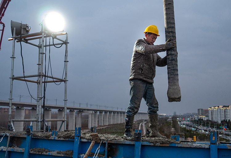 元旦期间,随着最后一跨钢箱梁在吊装到位后,意味着至1月5日起基本实现铁路立交段高架主体的贯通,为整个黄海路高架在春节前的建成通车增添了保障。工人们顶着严寒,加紧进行梁体联结焊接施工,与此同时,现浇段也利用当前气温稍有回升的良机,挑灯夜战,不着不让地加速推进护栏和桥面铺装施工,预计到本月中旬,整个桥面将将具备沥青摊铺施工条件。